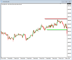 In this chart below you can see what was happening just before the release today. This sideways movements can be typical of the movements you will encounter just prior to major news announcements. When looking to trade prior to the announcement you can place stop orders to buy or sell as the price begins to move. You can see where we could have placed these two orders. There are several issues that can happen when trading close to the announcement. One is that if the spread widens you can get filled a poor price. Another is that the volatility can cause you to get in and stopped out quickly.