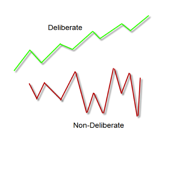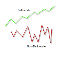 Take a look at the picture below which shows both a deliberate and a non-deliberate price action: